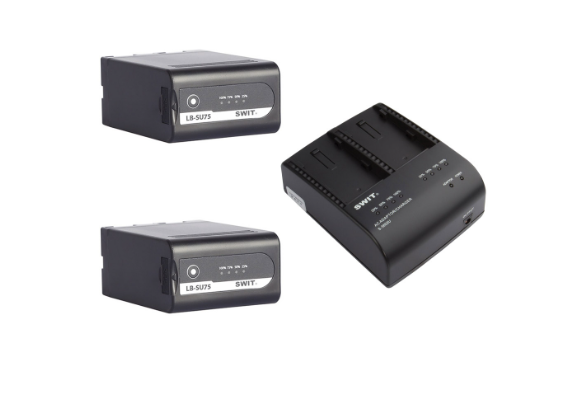 SWIT LB-SU75*2+S-3602U KIT je rješenje za napajanje s dvije baterije koje uključuje dvije 75Wh BP-U litij-ionske baterije i dvokanalni punjač S-3602U. Omogućuje istovremeno punjenje dviju baterija, ima LED indikatore punjenja i pruža ukupnu izlaznu snagu od 70 W, što ga čini idealnim za profesionalne DV kamere.