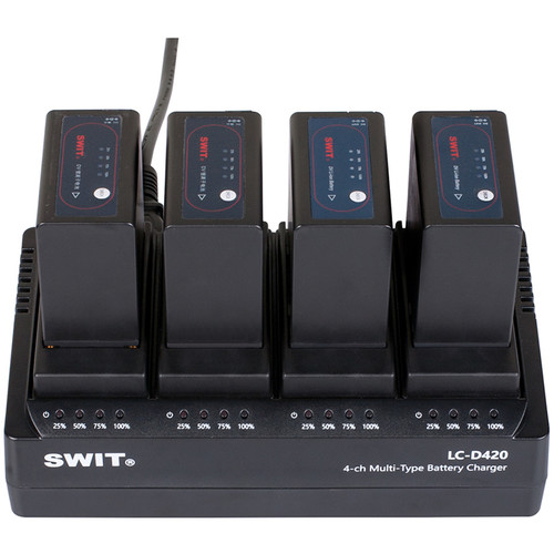 Punite do četiri baterije istovremeno sa SWIT 4-kanalnim simultanim DV punjačem baterija. Dolazi s četiri baterije koje podržavaju Sony NP-F seriju i SWIT S-8972, S-8970 i S-8770 baterije, a možete ih jednostavno zamijeniti za druge kompatibilne ploče. Svaki odjeljak puni se na 2 A, a LED indikator napajanja obavještava vas o statusu napunjenosti svake baterije.…