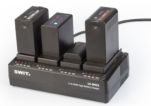 SWIT LC-D421 4-kanalni punjač s Panasonic VBG baterijskim pločama.