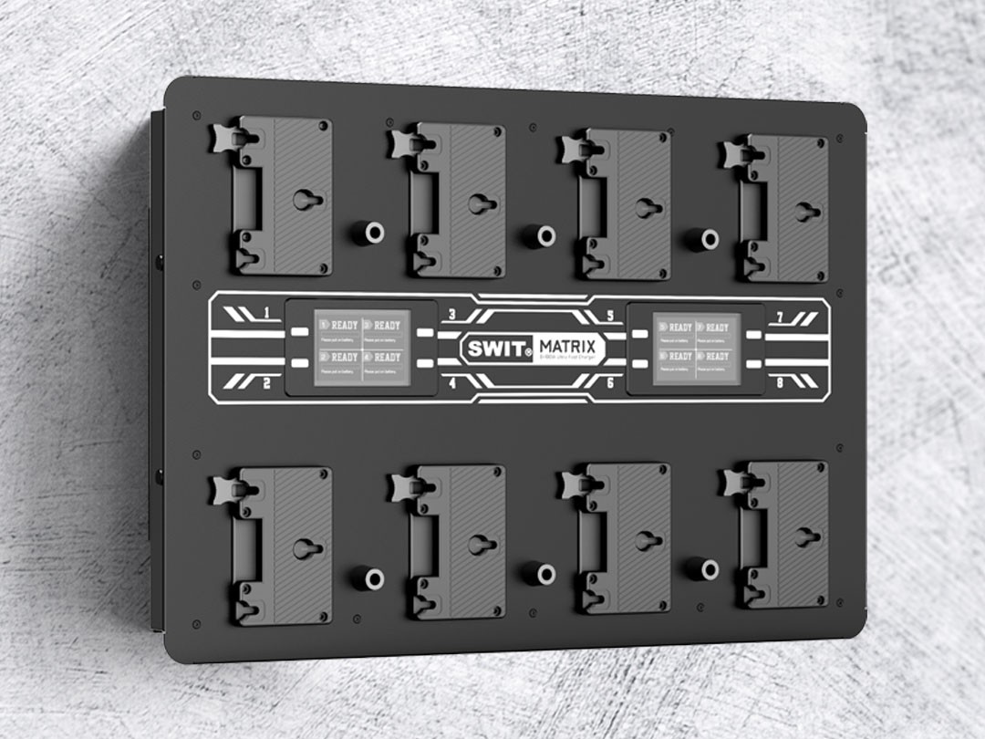 SWIT MATRIX-A8 je vysoce výkonná vícekanálová nástěnná nabíječka navržená speciálně pro profesionální video a vysílací baterie využívající systém Gold-mount. Nabízí 8 simultánních nabíjecích kanálů, z nichž každý je schopen dodávat až 6 ampérů při 16,8 voltech stejnosměrného proudu, a podporuje ultra rychlé nabíjení s výkonem 100 wattů na kanál. Tato výkonná funkce umožňuje výrazné zkrácení doby nabíjení baterií, které se obvykle používají v náročných produkčních prostředích.