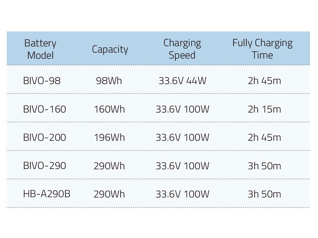 Svaki kanal osigurava istosmjerni izlaz od 33,6 volti s maksimalnom strujom do 3 ampera pri punjenju baterija velikog kapaciteta nazivne snage 160 vat-sati ili više. Za baterije manjeg kapaciteta, ispod 160 vat-sati, punjač automatski podešava izlaz na 1,5 ampera po kanalu kako bi se osiguralo optimalno punjenje. Ovaj dizajn s dvostrukom izlaznom strujom uravnotežuje brzo punjenje i sigurnost baterije.