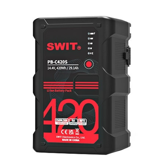 SWIT PB-C420S je V-mount baterija velikog kapaciteta od 420 Wh, koja nudi najveći svjetski kapacitet u ručnom V-mount formatu. Dizajnirana za emitiranje i filmsku produkciju, pruža dugotrajno napajanje pod velikim opterećenjem za kamere, monitore, rasvjetu i druge uređaje koji troše puno energije.