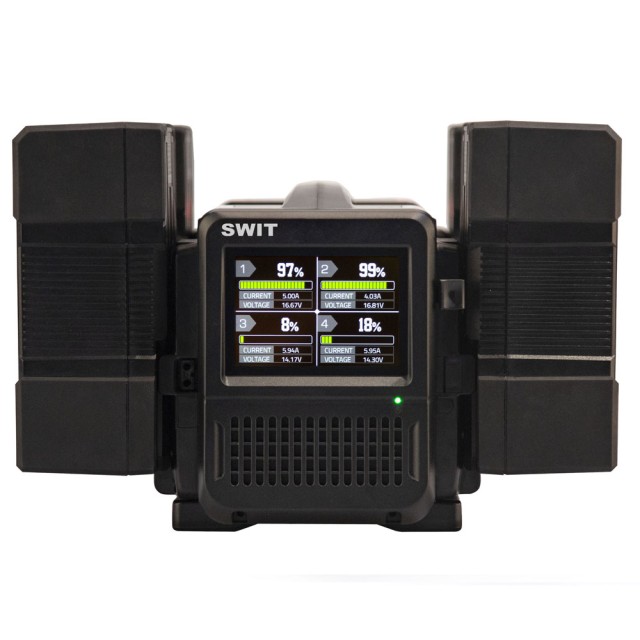 SWIT PC-P461S je potpuno simultani 4-kanalni 4x100W super brzi V-mount punjač s LCD info zaslonom za pojedinačni status punjenja baterije.