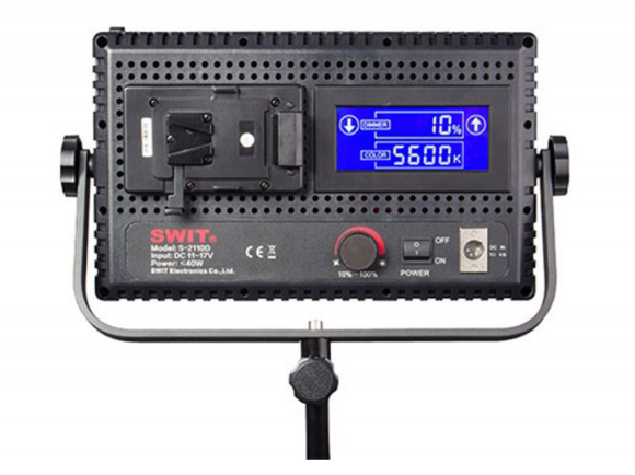 Napajanje je fleksibilno, putem V-mount ili Gold-mount baterija ili priloženog AC-DC adaptera, dok U-oblikovana nosač i priključak za stativ olakšavaju pozicioniranje na setu. Lagana, a ipak robusna, jedinica S-2110DS je prenosiva i idealna za svestrana profesionalna rasvjetna postavljena.