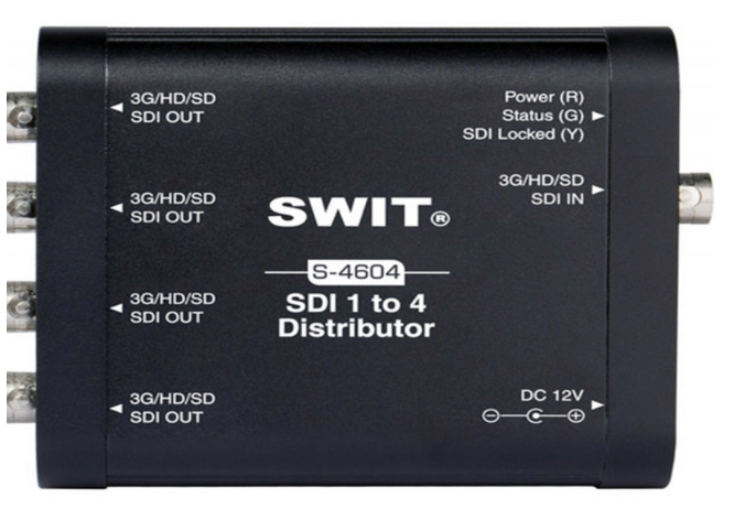 SWIT S-4604 3G-SDI 1 na 4 distributer i pojačalo je prijenosno i pouzdano SDI rješenje za distribuciju namijenjeno profesionalnim postavkama za emitiranje i produkciju. Prima jedan 3G/HD/SD-SDI ulaz i distribuira ga na četiri istovremena SDI izlaza, osiguravajući stabilnu i visokokvalitetnu prijenosnost signala.