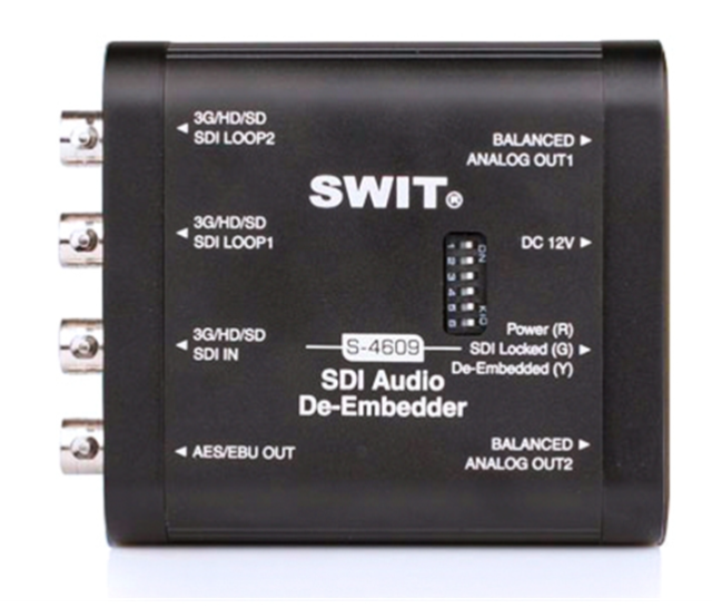 S-4609 SDI Audio De-Embedder je kompaktan i robustan audio pretvarač dizajniran za profesionalno emitiranje i terensku produkciju. Podržavajući 3G/HD/SD-SDI signale do 3 Gb/s, ovaj mini pretvarač može de-embedirati bilo koja dva audio kanala iz prvih osam kanala ugrađenih u SDI feed. Pruža fleksibilne izlazne opcije, uključujući AES/EBU digitalni audio i balansirani 6,35 mm analogni audio, što ga čini prikladnim za širok raspon aplikacija za obradu i praćenje zvuka.