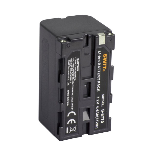 Baterija S-8770 je zamjena za originalnu bateriju Sony NP-F . Baterija je 7.2V , 31 Wh i opremljena je power jack konektorom koji je namijenjen za spajanje dodatne opreme za kameru kao npr. svjetlo kamere.