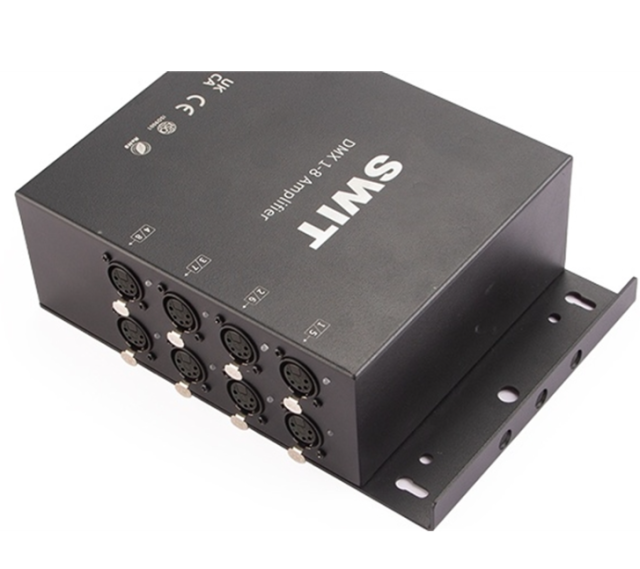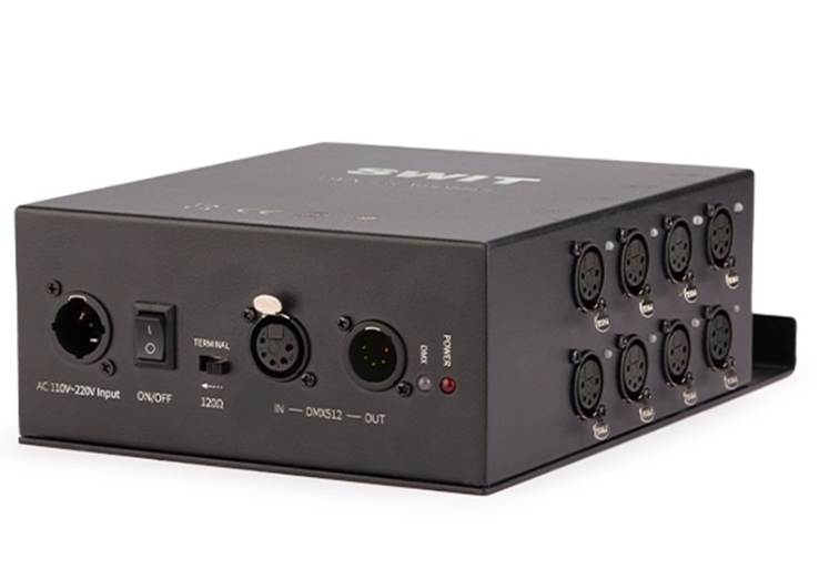 SWIT SA-D38 8-kanalni DMX pretvarač signala je profesionalno DMX512 pojačalo signala razvijeno za osiguranje stabilne i pouzdane kontrole rasvjete u složenim instalacijama. Njegova primarna funkcija je pojačavanje i distribucija DMX signala, a istovremeno štiti osjetljivu upravljačku opremu od električnih opasnosti poput visokonaponskih obrnutih spojeva, kratkih spojeva žarulja, prenapona uzrokovanih munjama i kvarova na mreži.