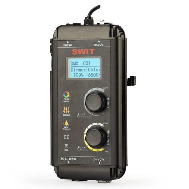 SL-150P kontroler svjetla pruža regulatore za prigušivanje i temperaturu boje, LCD zaslon, V-mount baterijsku ploču, 11-36V širokog raspona 4-pinski XLR DC IN, 5-pinski XLR DMX IN i OUT i 5V USB napajanje za bežično DMX adapter.