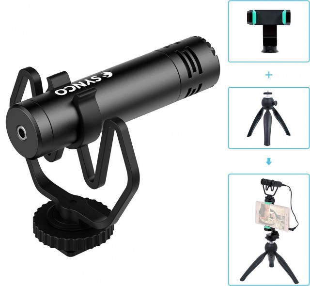 Synco Mic-M1 set mikrofona, viseći stalak za mikrofon, držač za mobilni telefon i minijaturni sklopivi tronožac s kuglastom glavom od 360°. Rješenje za streaming/vlogove/YouTube... Mic-M1 Electret Cardioid Camcorder mikrofon ima TRS/TRRS izlaz od 3,5 mm i malenu veličinu od 22x81 mm s težinom od samo 26 g! S/N 76 dB, osjetljivost -42 dB@1 kHz.