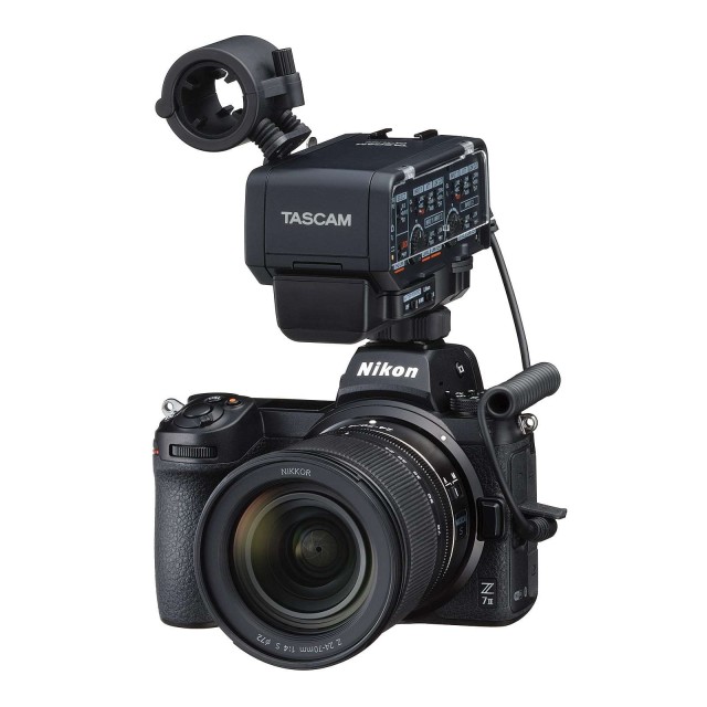 Ne morate brinuti o tome da priključak za vruće fotoaparate ne upravlja digitalnim audio signalom ili ne napaja Tascam mikrofonski adapter. Analogni komplet CA-XLR2d-AN može se koristiti s gotovo svakom kamerom koja ima analogni audio ulaz. Pričvrstite priloženu kutiju za baterije (dvije AA baterije) i povežite analogni izlaz CA-XLR2d s ulazom mikrofona fotoaparata pomoću priloženog stereo audio kabela. To vam omogućuje da iskoristite prednosti visokokvalitetnih mikrofonskih pretpojačala i funkcija obrade zvuka kako biste značajno poboljšali zvuk svoje filmske snimke.