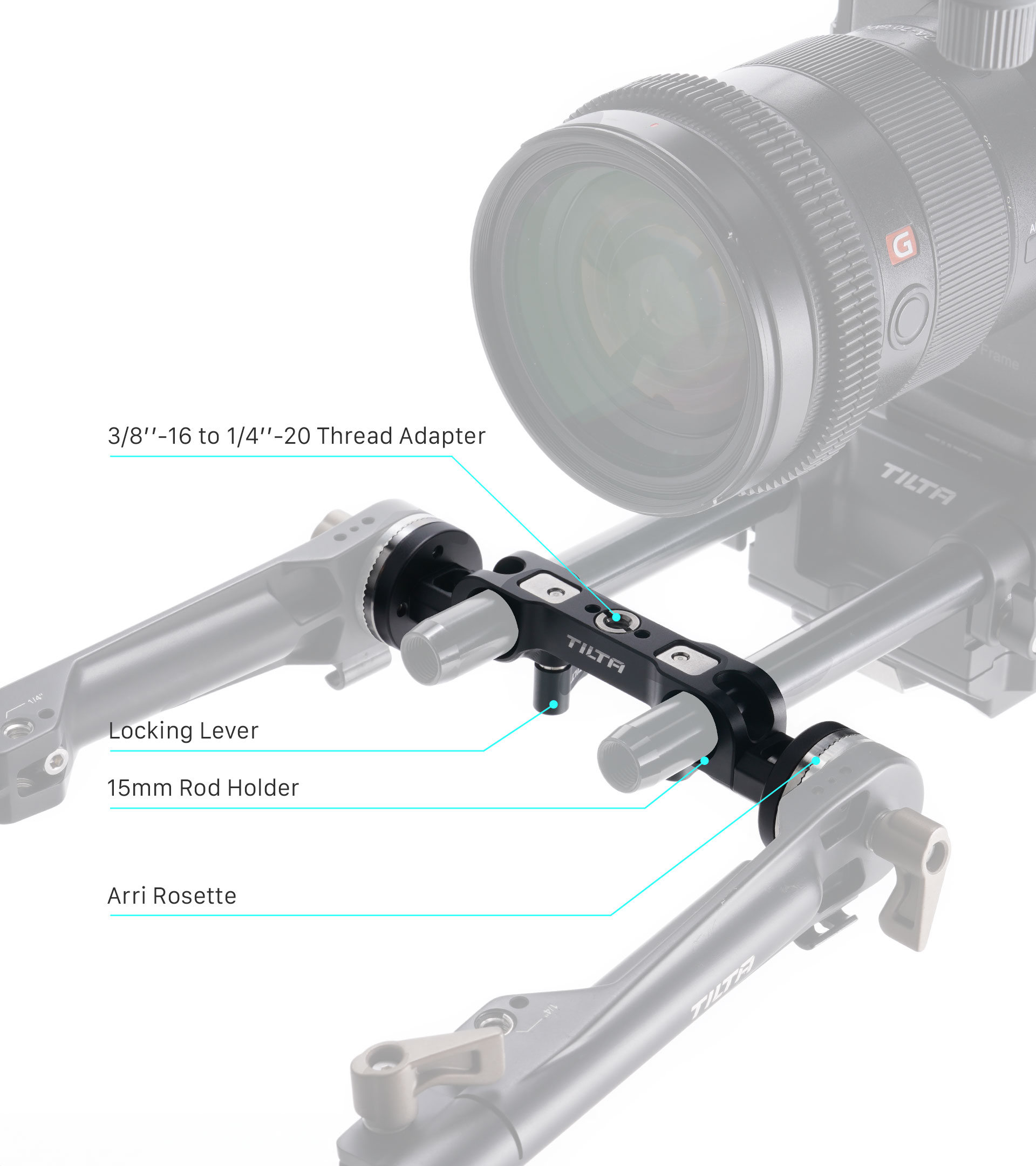 U ovom središtu nosača šipke nalazi se navoj 3/8″-16 s reduktorom 1/4″-20, koji prima niz dodatnog pribora.