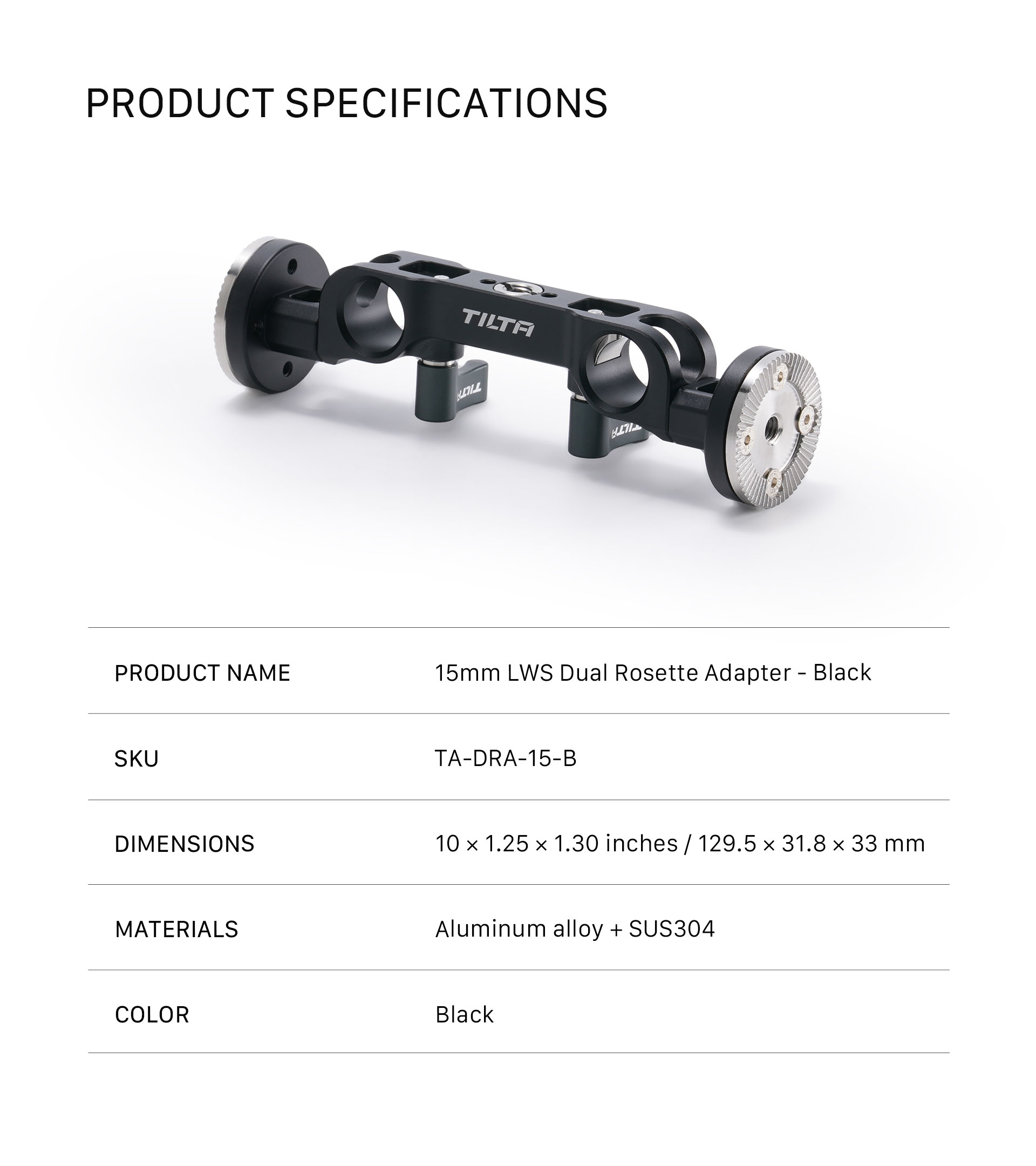 Predstavljamo 15 mm LWS adapter s dvostrukom rozetom. Ovaj adapter u stilu mosta montira se putem 15 mm LWS šipki i omogućuje korisnicima montažu dodatne opreme putem rozetnih priključaka.