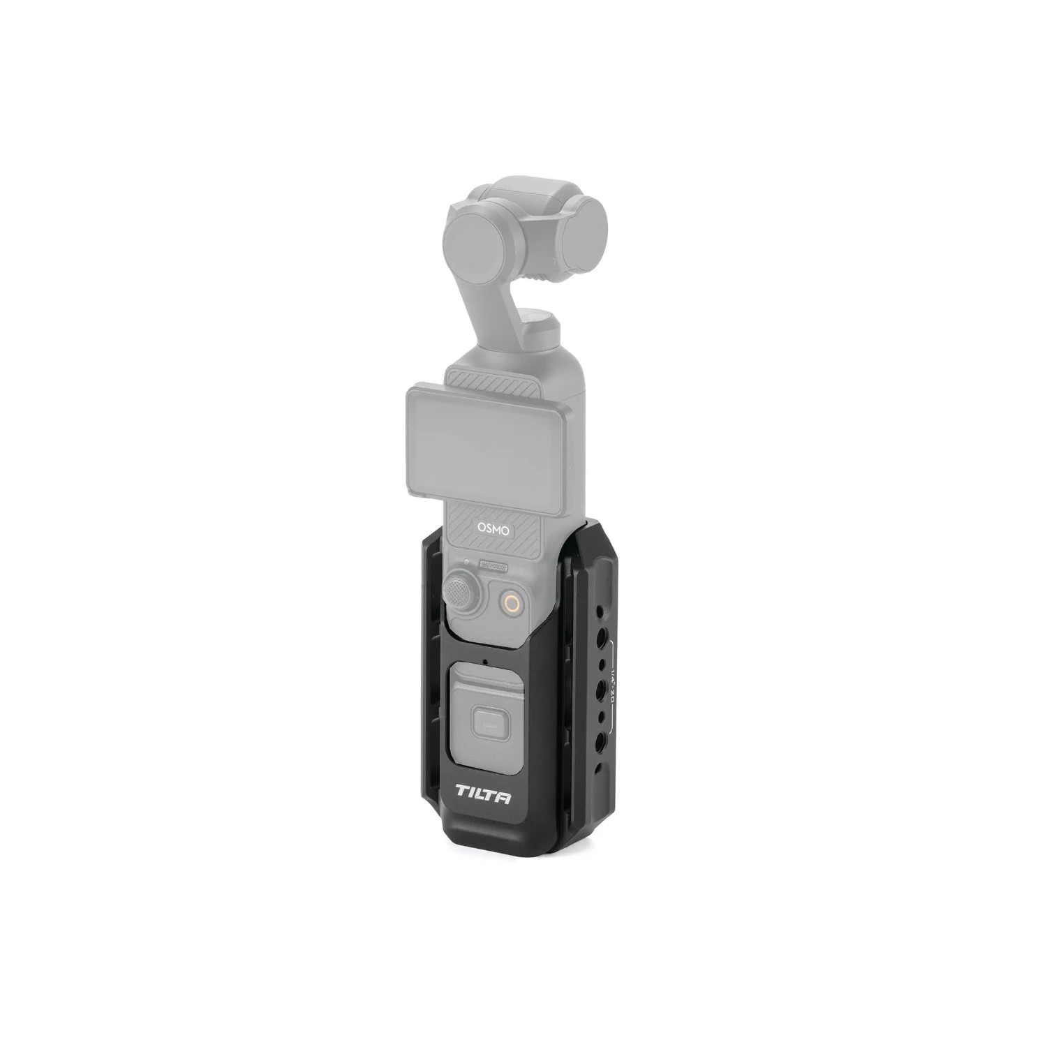 Pričvrstite službenu ručku i modul za proširenje na DJI Osmo Pocket 3 pomoću donjeg konca od 1/4″ za savršeno pristajanje koje ne ometa zaslon, gumbe ili funkcije kamere.