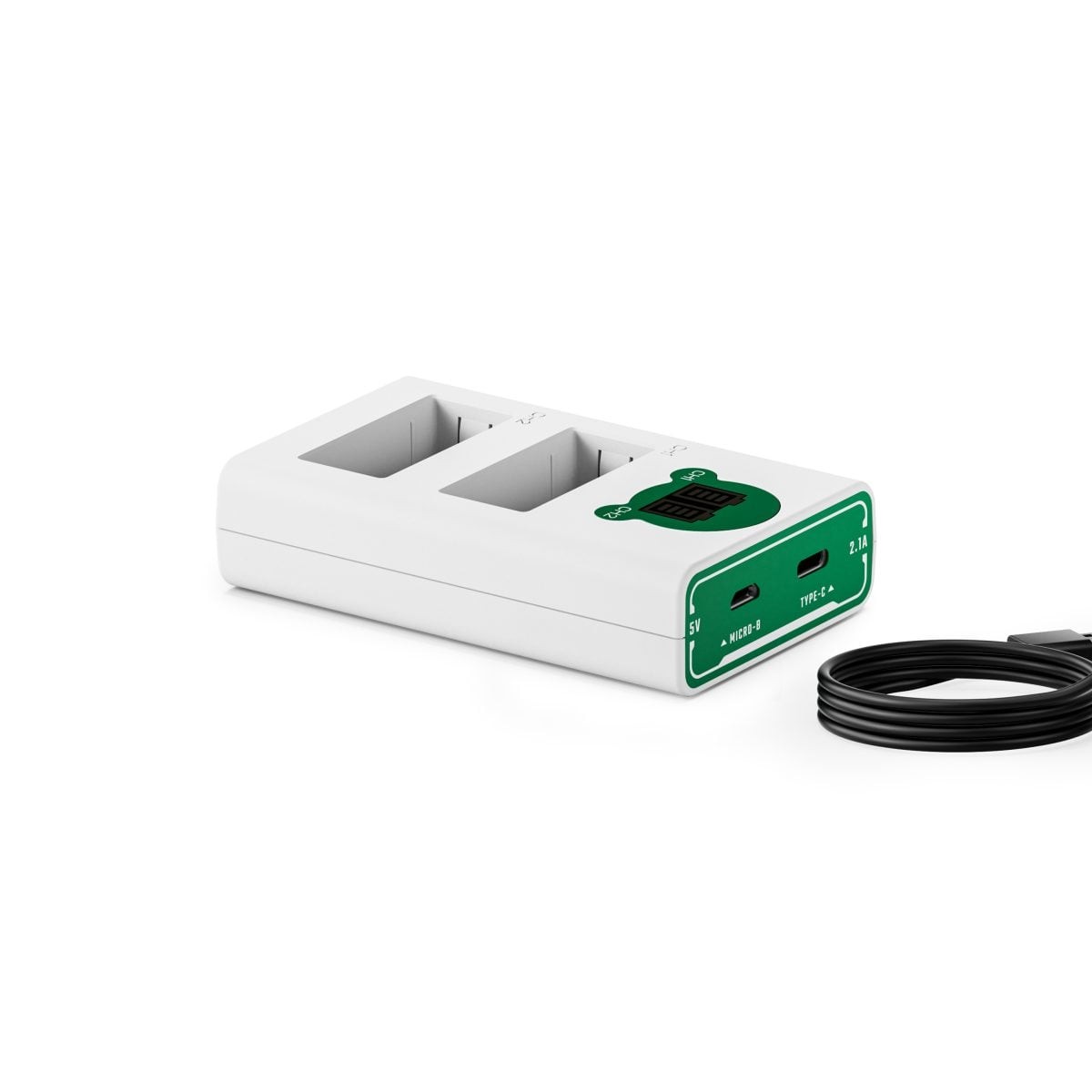 Cjelokupne tehničke specifikacije obuhvaćaju istovremeno punjenje na dva kanala, ulaz USB-C 5V 2A QC, ulaz Micro-USB, LCD zaslon u stvarnom vremenu, pametnu zaštitu od prekida napajanja i kompatibilnost s baterijama NP-W126S, sve smješteno u kompaktno kućište u šumsko zelenoj boji, idealno za mobilne kreatore.