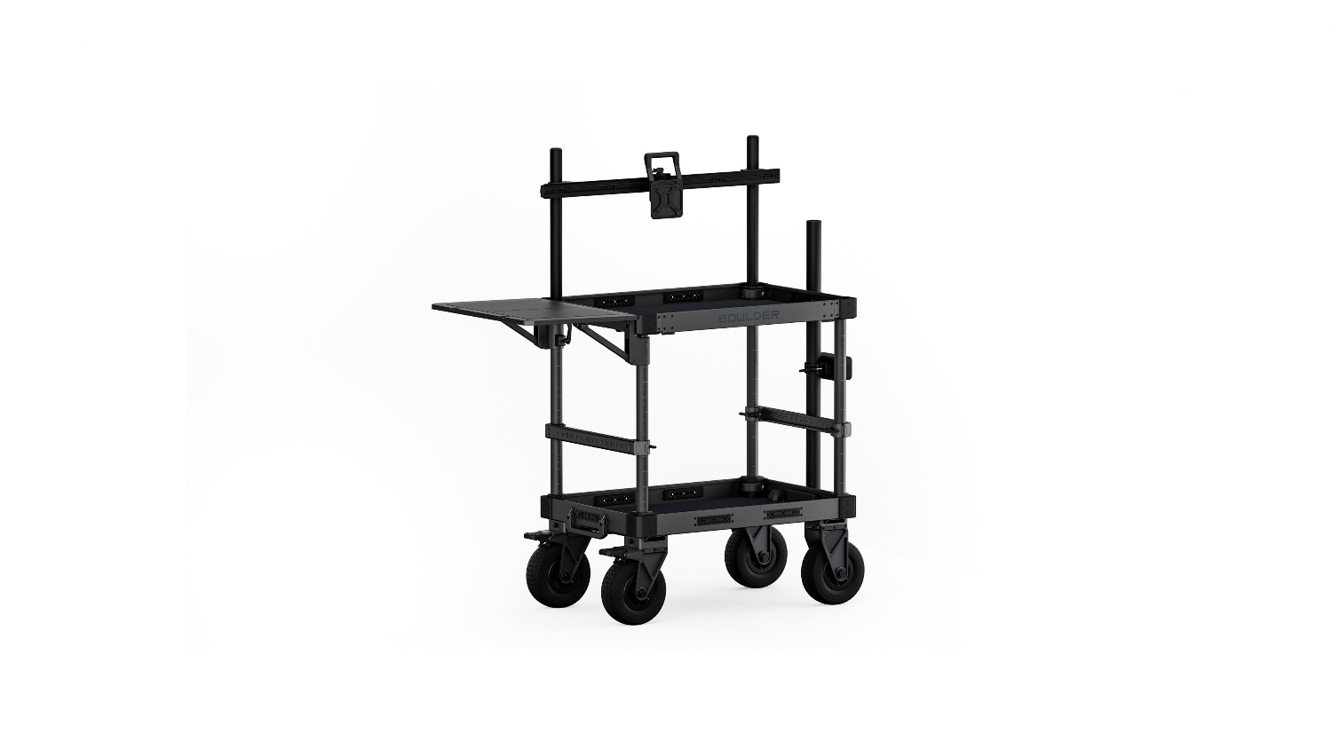 Modularna radna stanica: Izrađena od IZDRŽLJIVOG ALUMINIJA , kolica nude široku prilagodbu s više opcija montaže, uključujući navoje od 1/4″-20 i 3/8″-16 s točkama za lociranje. Kolica služe kao mobilno središte za asistente kamere, DIT-ove i tehničare.