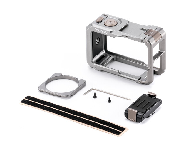 Tilta TA-T72-A-TG kompletni kavez za kameru s kompletom za montažu (titanijsko siva) je kompletna, modularna oprema spremna za snimanje za DJI Osmo Action 5 Pro/4/3, koja kombinira zaštitni magnezijsko-aluminijski kavez s dvostrukim brzim otpuštanjem, magnetskim nosačem Tilta filtera, gornjim hladnim papučicom, bočnim navojem 1/4"-20 i magnetskom brzootpuštajućom baznom pločom koja se može pričvrstiti na dno ili stranu - sve završeno u elegantnoj titanijsko sivoj boji za vrhunsku izdržljivost i stil.