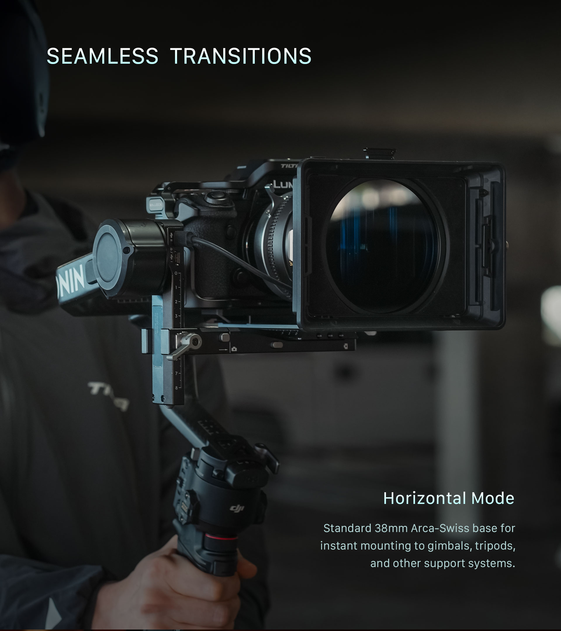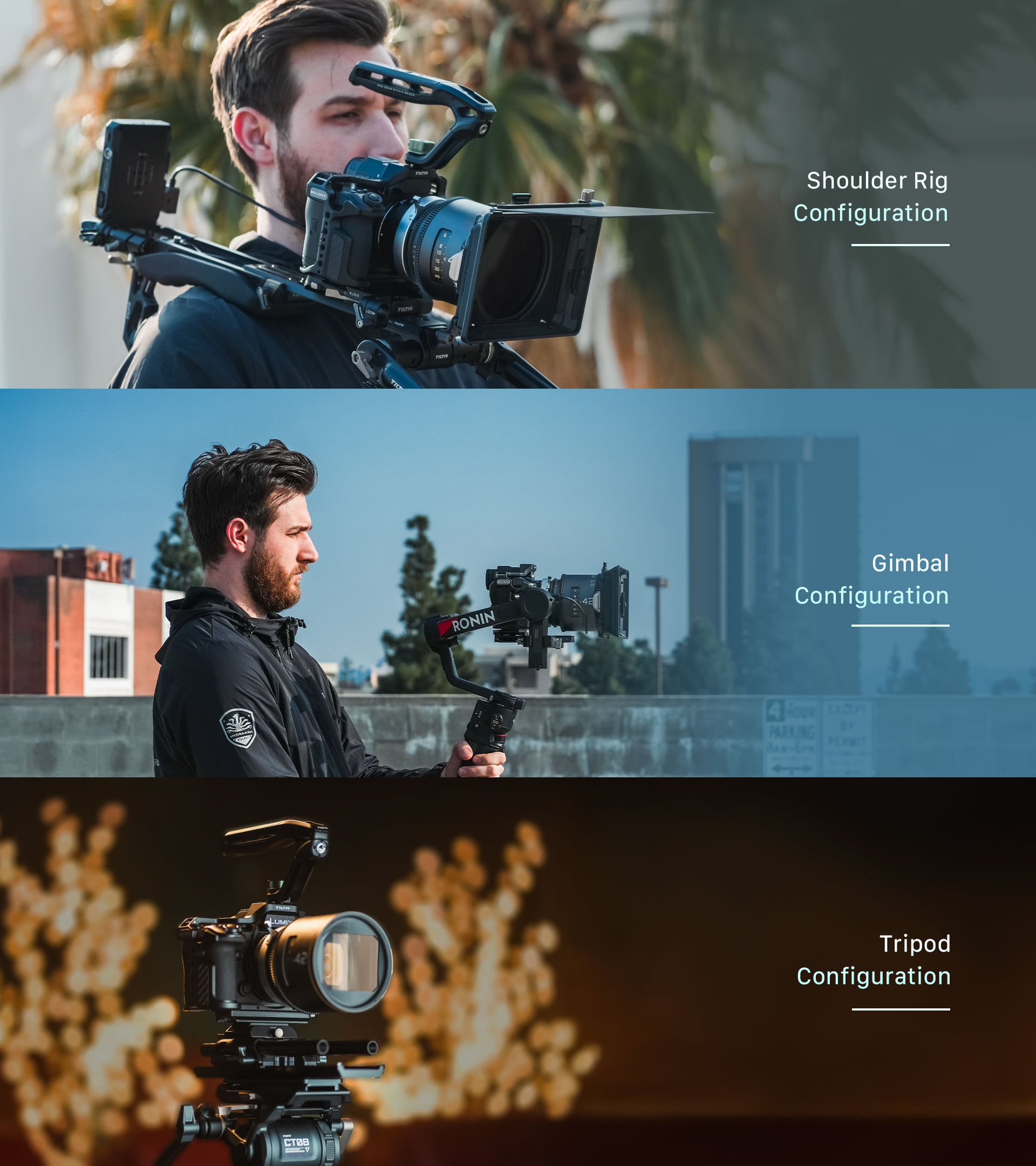 Ima ARCA donju ploču koja korisnicima omogućuje jednostavnu montažu sustava na razne stative, potporne sustave i DJI Ronin gimbale poput RS4 Pro. Točke za montažu na bočnoj ruci omogućuju jednostavnu montažu ARCA ploče za brzo otpuštanje (nije uključena) koja omogućuje brz prijelaz na vertikalne postavke.