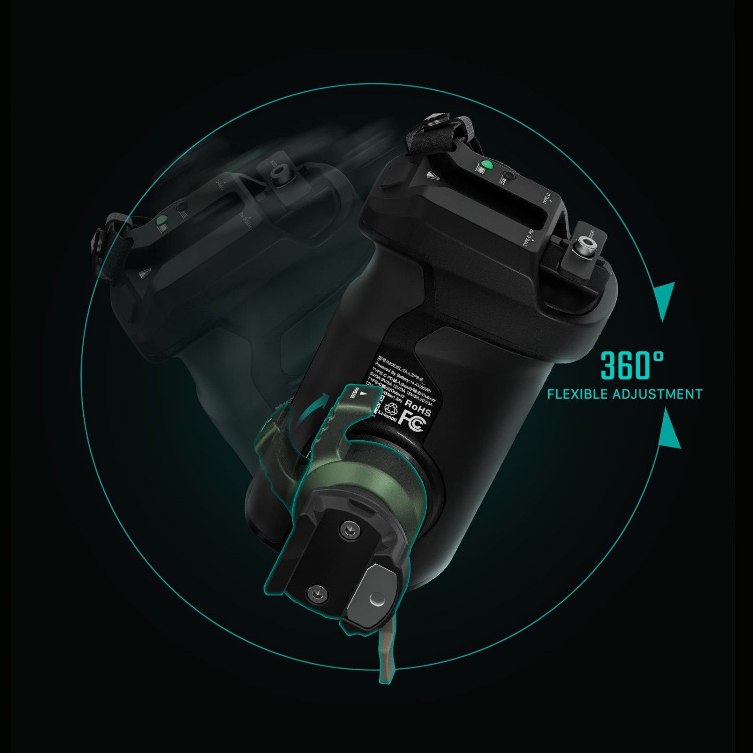 Pokročilá sada obsahuje boční rukojeť PD s vysokokapacitní interní baterií o výkonu 50 wattů za hodinu, která poskytuje 50 wattů výkonu pro chladicí systém a prodlužuje dobu provozu. Uvolňovací páčka na rukojeti umožňuje rychlé a přesné nastavení úhlu rukojeti, což zjednodušuje ovládání a vytváří efektivnější pracovní postup. Sada také obsahuje horní rukojeť, která rozšiřuje možnosti upevnění a zároveň zlepšuje flexibilitu pro provoz různých konfigurací a úhlů natáčení. Tyto systémy rukojetí transformují klec z ochranného pouzdra na plně integrovanou produkční soupravu.