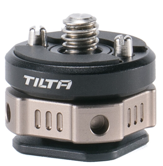 Tilta TA-PMB5-CS-B adapter za hladni priključak je kompaktan, čvrst aluminijski konektor koji trenutno pretvara donji navoj od 1/4"-20 navoja Tilta rotirajućeg nosača za montažu telefona V2 u standardni hladni priključak, omogućujući brzo pričvršćivanje držača telefona na bilo koji hladni priključak za kameru, cage hladni priključak ili priključak za dodatnu opremu bez alata.