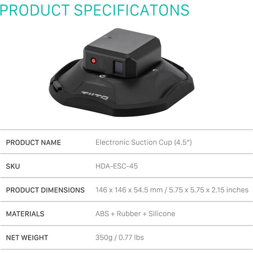 Elektronička vakuumska čašica Tilta (4,5") je visokoučinkovito rješenje za montiranje dizajnirano za filmaše i fotografe, koje nudi robusnu okomitu nosivost od 44,1 lbs. Sadrži snažan motor i napredni sustav detekcije tlaka zraka, osiguravajući sigurno i pouzdano držanje . Integrirani LCD zaslon omogućuje praćenje u stvarnom vremenu, dok modularne opcije za montiranje na vrhu pružaju svestrane konfiguracije za montažu. Opremljen baterijom od 2000 mAh i USB-C priključkom za punjenje, ova vakuumska čašica je i snažna i praktična za zahtjevna okruženja. .