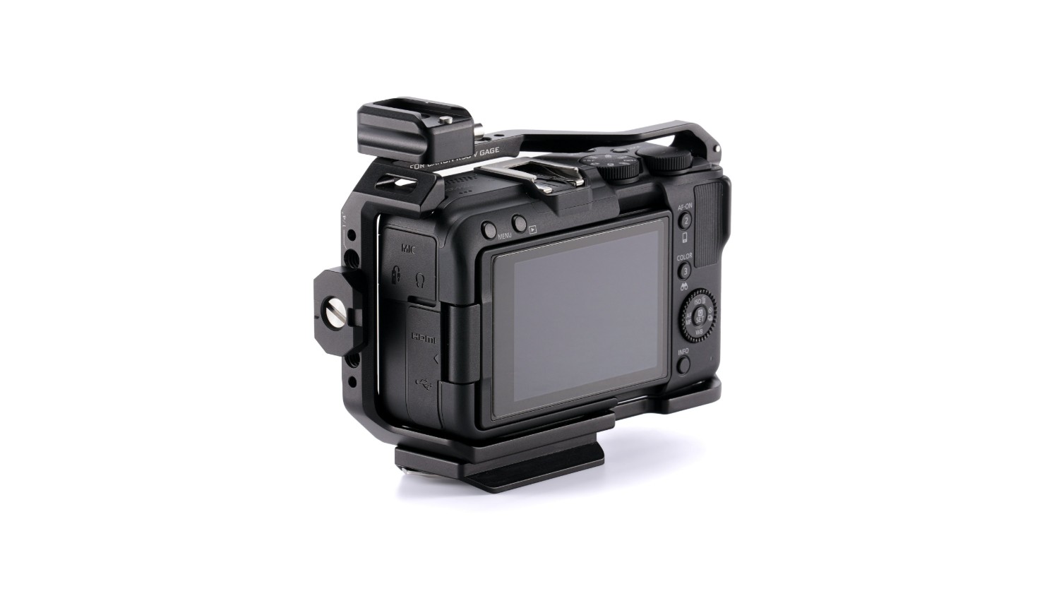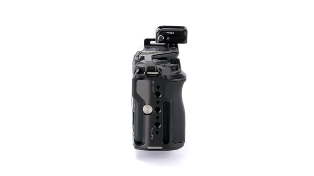 Predstavljamo vam full-cage za kameru za Canon R50 V. Ovaj kavez za kameru služi kao dodatni sloj zaštite za tijelo vašeg fotoaparata, a ujedno omogućuje smještaj širokog raspona vanjske opreme putem više opcija montaže, uključujući Cold Shoe prijemnik, NATO šinu i navoje ¼”-20 s točkama za lociranje.