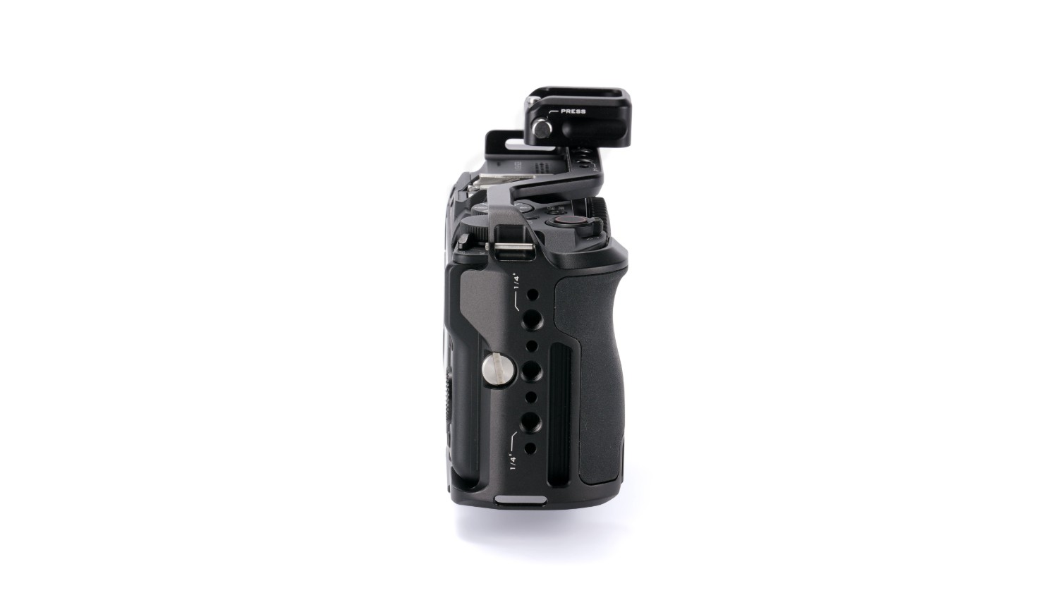 Uključili smo ugrađenu dršku sa silikonskom drškom koja se dobro prilagođava krivulji dlana, što je čini udobnijom za korištenje iz ruke nego tradicionalni kavez za kameru.