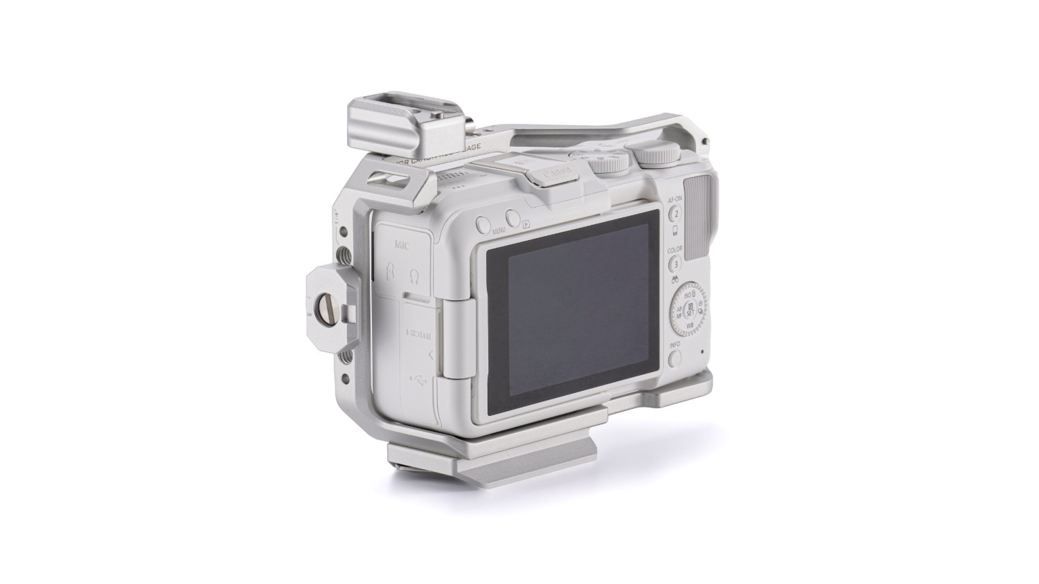 Predstavljamo vam full-cage za kameru za Canon R50 V. Ovaj kavez za kameru služi kao dodatni sloj zaštite za tijelo vašeg fotoaparata, a ujedno omogućuje i montažu širokog raspona vanjske opreme putem više opcija montaže, uključujući Cold Shoe prijemnik, NATO šinu i navoje ¼”-20 s točkama za lociranje.
