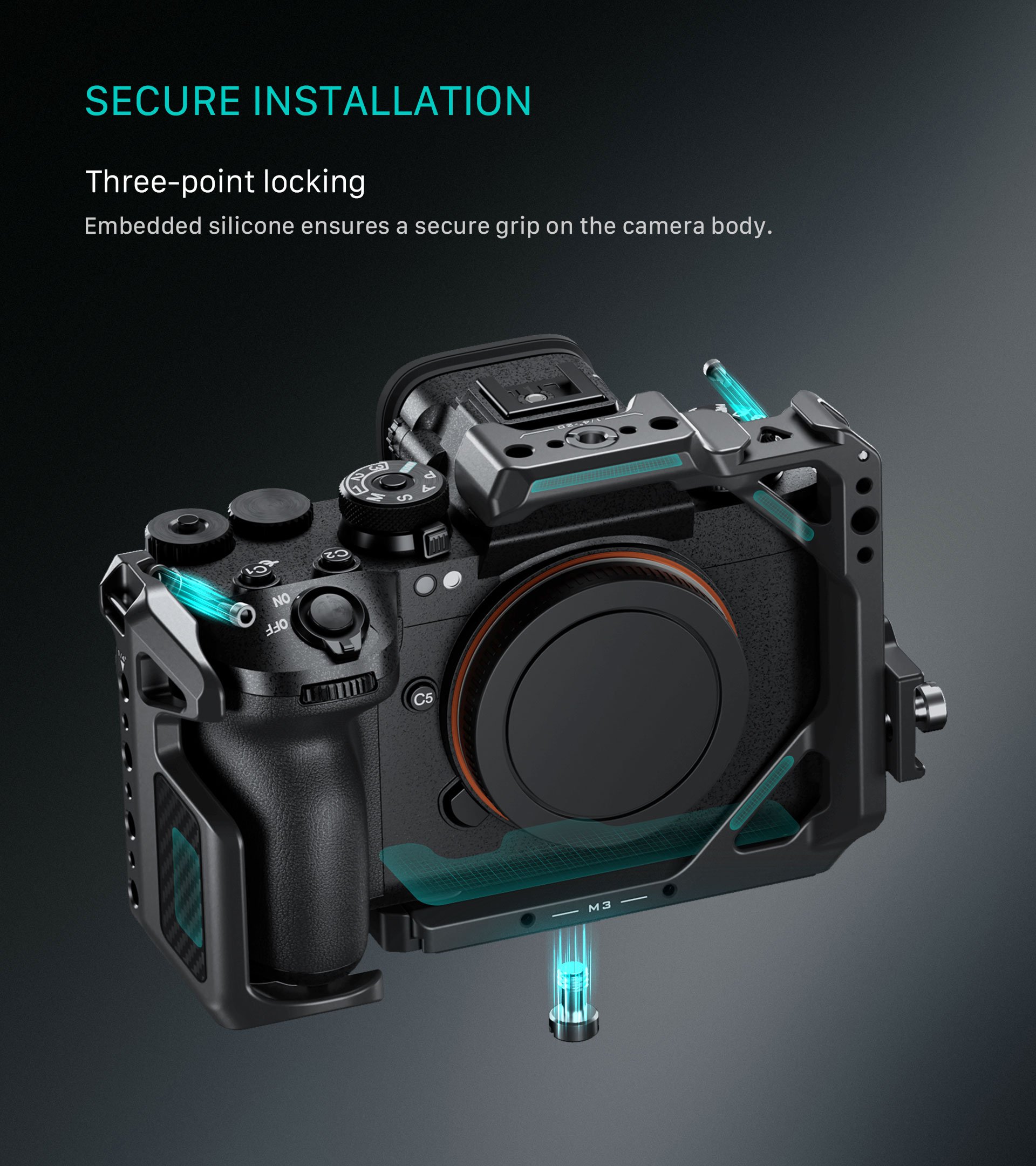 Predstavljamo Full Camera Cage za Sony a1 II i a9 III. Ovaj kavez za kameru pruža dodatnu zaštitu za tijelo fotoaparata, a istovremeno proširuje mogućnosti montaže za razne dodatke.