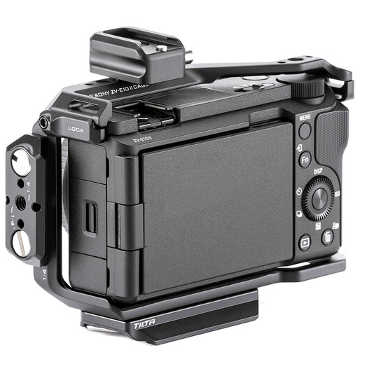 Tilta TA-T69-FCC-B Full Camera Cage (crni) je lagani, modularni aluminijski oklopni sustav izrađen po mjeri za Sony ZV-E10 II, koji pruža potpunu zaštitu s punim pristupom priključcima, ugrađenom silikonskom ručkom, gornjom/bočnom hladnom papučicom i NATO šinom, višestrukim navojima protiv uvrtanja 1/4"-20 i 3/8"-16, bazom kompatibilnom s Arca-Swiss + DJI RS gimbalom i uklonjivim bočnim/gornjim pločama - sve to uz težinu od samo 94 g za vrhunsku vlogging opremu.