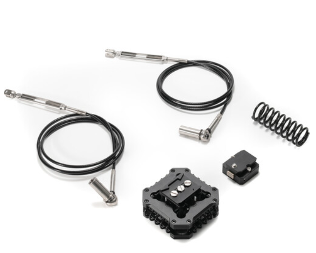 Tilta HDA-T08-MK-R2 komplet zamjenjuje standardne poliuretanske amortizere amortizerima od čelične žice koji izvrsno ublažavaju jake vibracije s neravnih cesta i vožnje velikom brzinom. Čvršća opruga za teške uvjete rada povećava sigurno radno opterećenje na 28,7 lb, dok priložena adapterska ploča za Ronin 2 s brzim otpuštanjem omogućuje izravnu montažu zgloba bez alata i dodatnih lastavičinih repova. Dva 2-metarska potporna kabela od nehrđajućeg čelika dodaju redundantnost i dodatno stabiliziraju sustav. Napomena: ova modifikacija ograničava ruku na samo dva dijela (bez trećeg produžetka) kako bi se održale sigurnosne granice pri većem korisnom opterećenju.