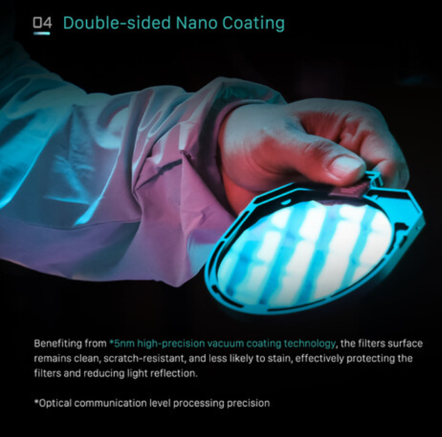 Tilta TF-95-BS 95mm Illusion Blue Streak filter transformira obična točkasta svjetla u upečatljive, izdužene plave bljeskove koji podsjećaju na klasično anamorfno staklo. Filter se okreće za 360° unutar Mirageovog 95mm držača, dajući vam potpunu kreativnu kontrolu nad smjerom pruga bez premještanja mat kutije. Izrađen od visokokvalitetnog optičkog stakla bijele boje s višeslojnim nano premazom s obje strane, održava iznimnu oštrinu i vjernost boja, a istovremeno dramatično smanjuje refleksije, otiske prstiju i ogrebotine. Neophodan alat za snimatelje koji žele anamorfnu estetiku "plave linije" na pristupačnim sfernim objektivima ili pri snimanju s otvorenim vratima/variskopom.