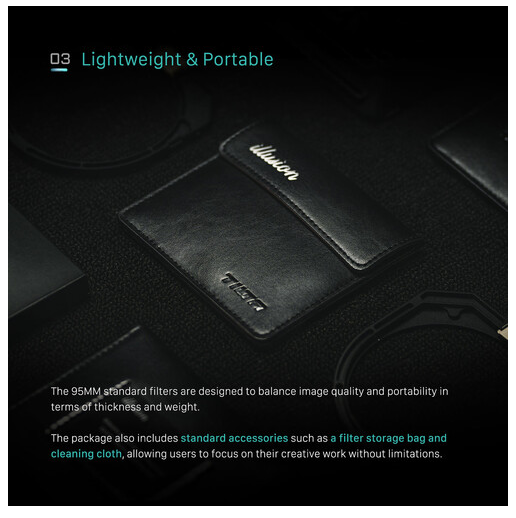 Tilta TF-95-DZ Illusion 95mm Dazzle Filter je vrhunski difuzijski filter s nano premazom koji stvara zapanjujuće, dinamične višebojne bljeskove iz izvora svjetlosti, omogućujući precizno usmjereno pozicioniranje za kreativne kinematografske efekte, a istovremeno pruža točnu reprodukciju boja i vrhunsku otpornost na ogrebotine/refleksiju – savršeno prilagođen kružnom utoru od 95 mm Tilta Mirage Matte Box kutije.