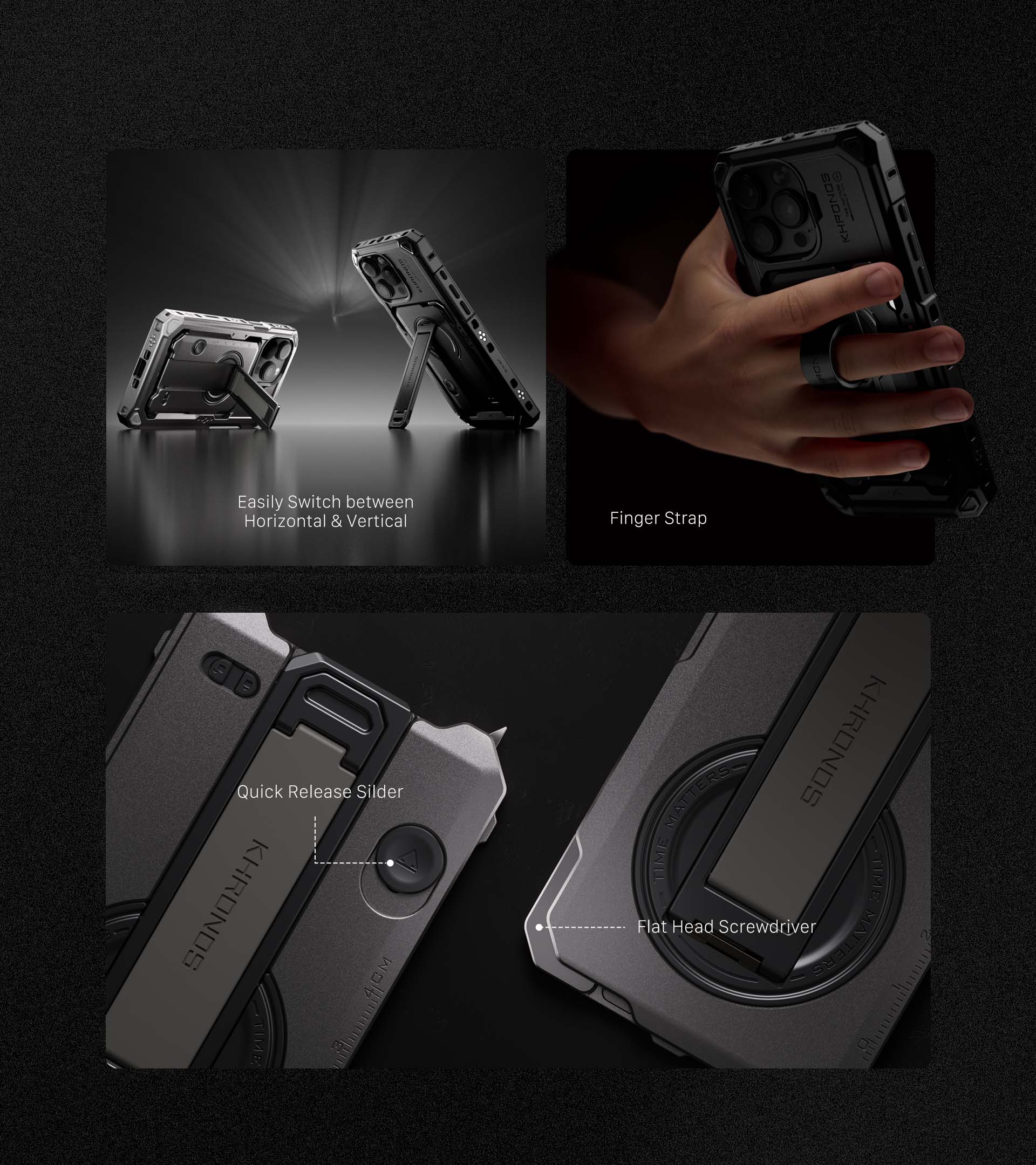 Predstavljamo Khronos Handheld Kit za iPhone 16 Pro / Pro Max, sljedeću generaciju mobilnog snimanja filmova. Pažljivo dizajnirana za oba modela iPhonea 16, ova maskica za pametne telefone inspirirana kavezom za kameru nudi neusporedivu mješavinu funkcionalnosti i elegancije. Izrađena da zaštiti vaš telefon od svakodnevnog habanja, Khronos maskica nudi pouzdanu zaštitu bez kompromisa u pogledu stila ili funkcionalnosti.