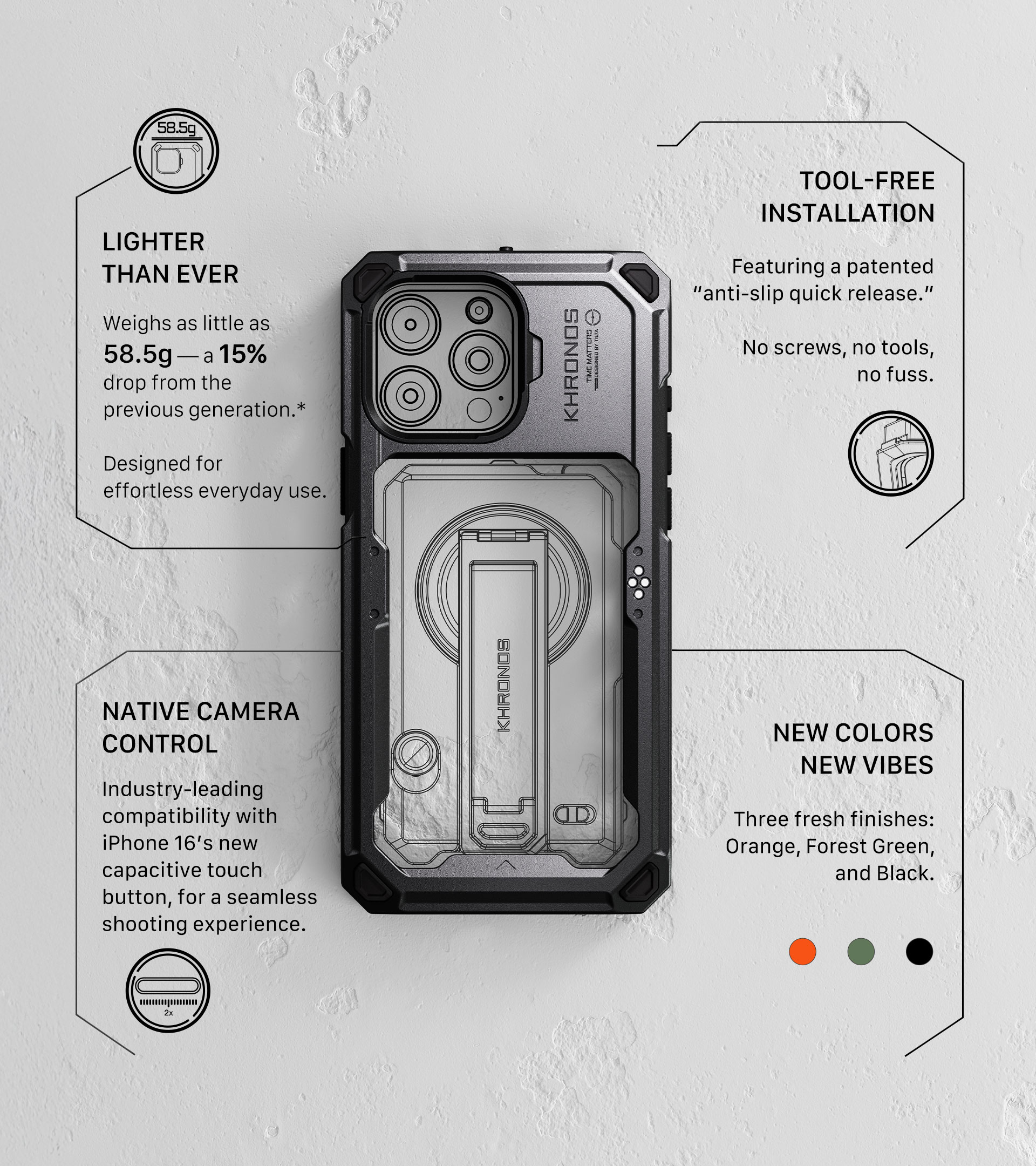 Doživite snimanje filmova kao nikada prije s Khronos maskom za iPhone 16 Pro / Pro Max – gdje se inovacija susreće sa strašću.