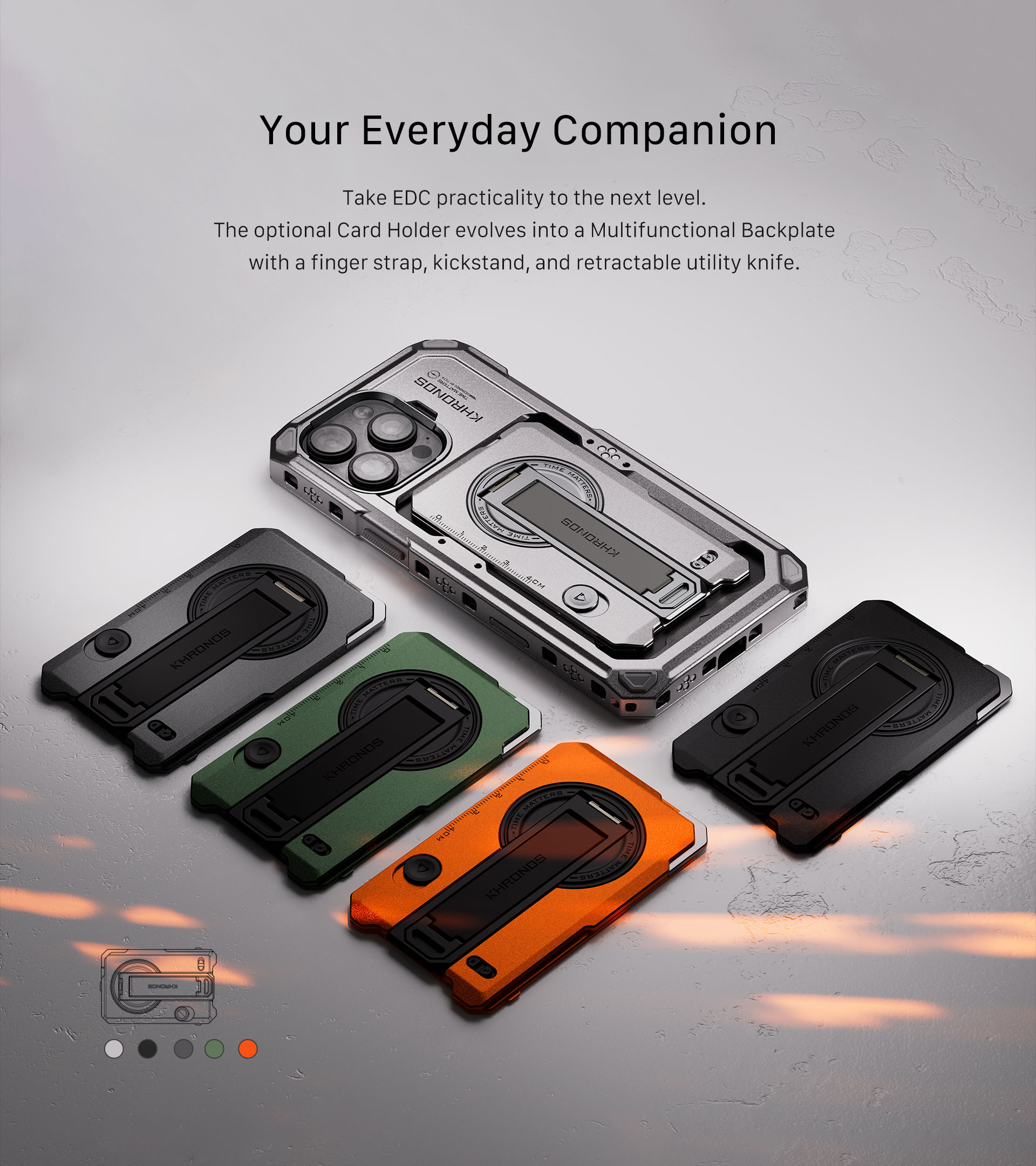 Dostupna u svemirsko sivoj, titanijsko bijeloj, šumsko zelenoj, crnoj i narančastoj boji, Khronos maskica nadopunjuje dizajn vašeg iPhonea i istovremeno dodaje dašak stila.