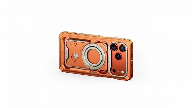 Tilta Khronos maskica za iPhone 17 Pro Max u narančastoj boji temelj je Khronos ekosustava za mobilnu produkciju filmova. Ova zaštitna maskica za pametne telefone inspirirana kavezom posebno je dizajnirana za iPhone 17 Pro Max i ima dizajn s brzim otpuštanjem i proširivi dizajn s više točaka pričvršćivanja, uključujući mehanizam za zaključavanje . Najvažnije je da uključuje integrirane elektroničke kontaktne točke za izravan prijenos napajanja na montiranu dodatnu opremu poput Focus ručki i svjetala.