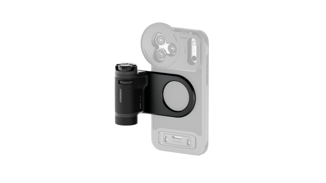 Uključen je magnetski nosač koji omogućuje sigurnu vezu između ručke i iPhonea, pružajući fleksibilnost i jednostavnost korištenja. Zahvaljujući Bluetooth povezivosti , ručka drži USB-C priključak iPhonea slobodnim, a istovremeno omogućuje besprijekorno upravljanje fokusom, zumiranjem, zatvaračem i snimanjem izravno s ručke.