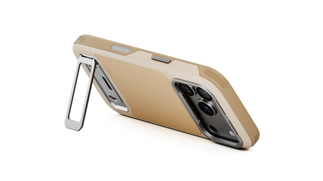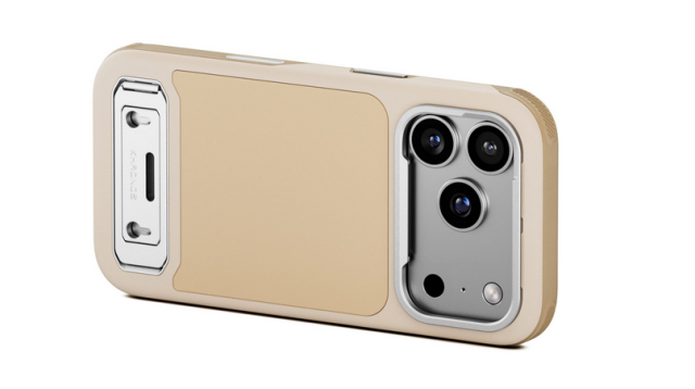 Tilta Khronos Lite maskica za iPhone 17 Pro (boja šampanjca) pruža profesionalne performanse u lakšem obliku. Uključuje integrirani vertikalni i horizontalni stalak za gledanje, snažnu magnetsku stražnju ploču za brzo pričvršćivanje dodataka (držači kartica, SSD-ovi, svjetla) i kapacitivni dodirni prolaz za responzivno upravljanje kamerom.
