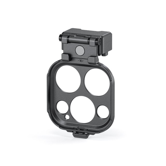 Ladica ima okretni nosač koji omogućuje da se ladica postavi preko sve tri leće iPhonea 16 Pro/Pro Max.