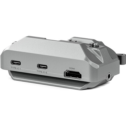Tilta Khronos Quick Release USB-C Hub u Titanium White dizajniran je za besprijekornu integraciju s vanjskim uređajima, nudeći povezivanje sa stativima ili gimbalima sa svojom integriranom ARCA pločom za brzo otpuštanje. Sadrži 2 x USB-C priključka, 1 x HDMI priključak i 1 x 3,5 mm audio izlaz, što omogućuje istovremenu upotrebu USB-C priključaka za svestrane mogućnosti povezivanja.