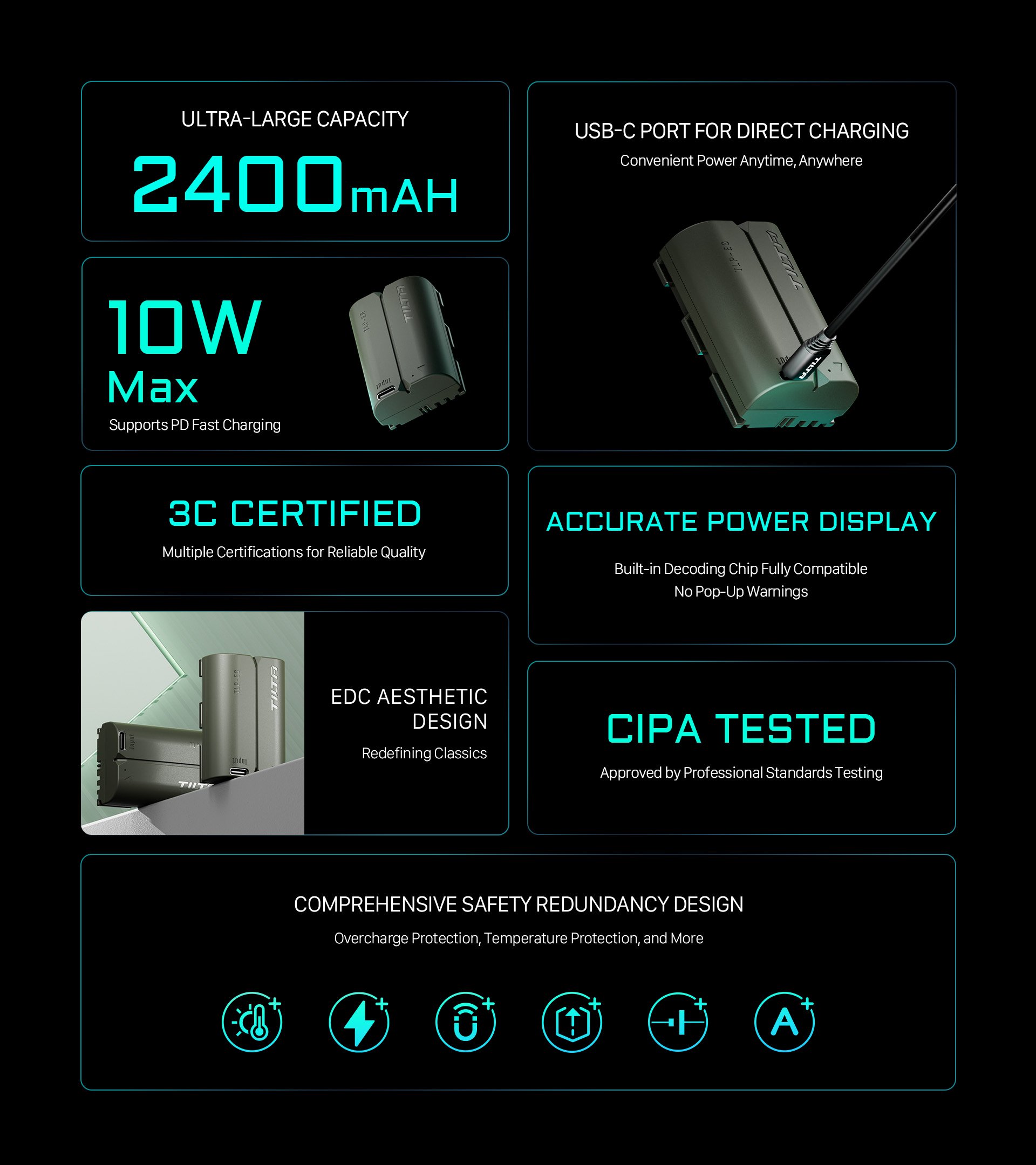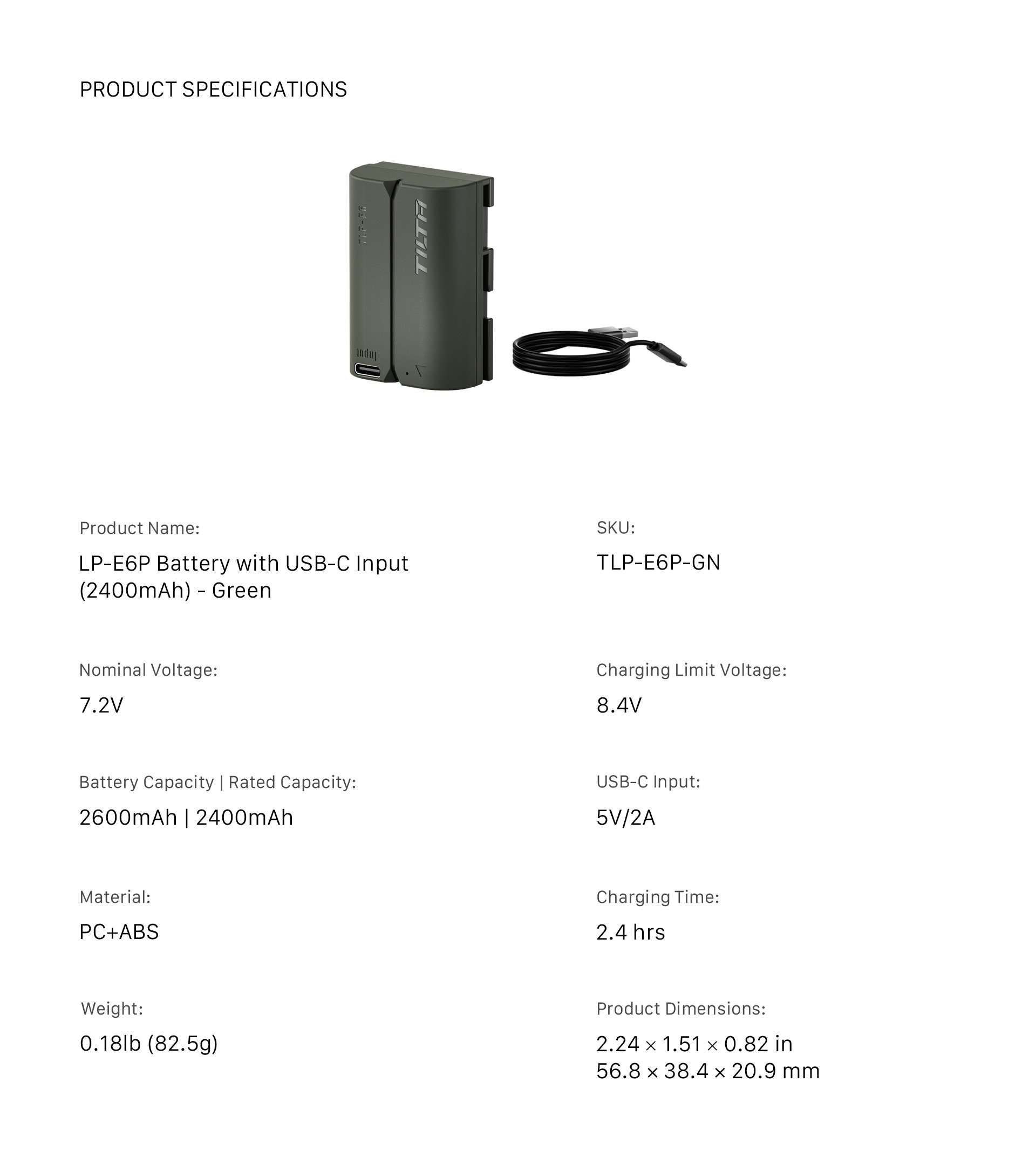 Baterija velikog kapaciteta LP-E6P dizajnirana je za pouzdano i dugotrajno napajanje vašeg fotoaparata, osiguravajući vam dulje snimanje bez prekida. Zahvaljujući inovativnoj baterijskoj ćeliji visoke gustoće energije, ova baterija pruža produljenu izdržljivost, što je čini idealnom za fotografiranje i snimanje videa.