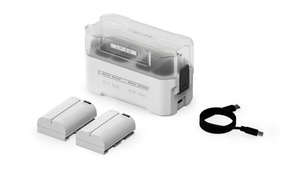 Komplet baterija za punjenje Tilta TBC-E6P-A-OW LP-E6P (prljavo bijele boje) kompaktno je rješenje za brzo punjenje s četiri utora za punjenje i brzim USB-C 45W PD punjenjem, dizajnirano za Canon, Tilta i većinu LP-E6 baterija trećih strana - idealno za kreativce kojima je potrebno pouzdano napajanje u pokretu.
