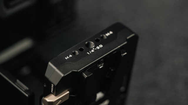 Ploča za bateriju ima navoje od 1/4”-20 i M4 na vrhu, što omogućuje spajanje na razne adaptere.