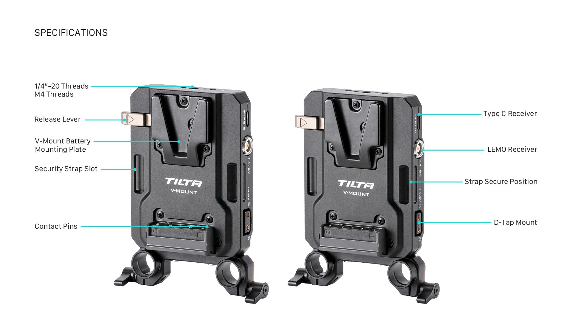 Ova ploča za baterije omogućuje korisnicima produljenje vremena rada fotoaparata i dodatne opreme putem V-Mount baterija većeg kapaciteta. Ova ploča ima više opcija izlazne snage, kao što su 60W PD USB-C, P-Tap i 2-pinski Lemo priključak.