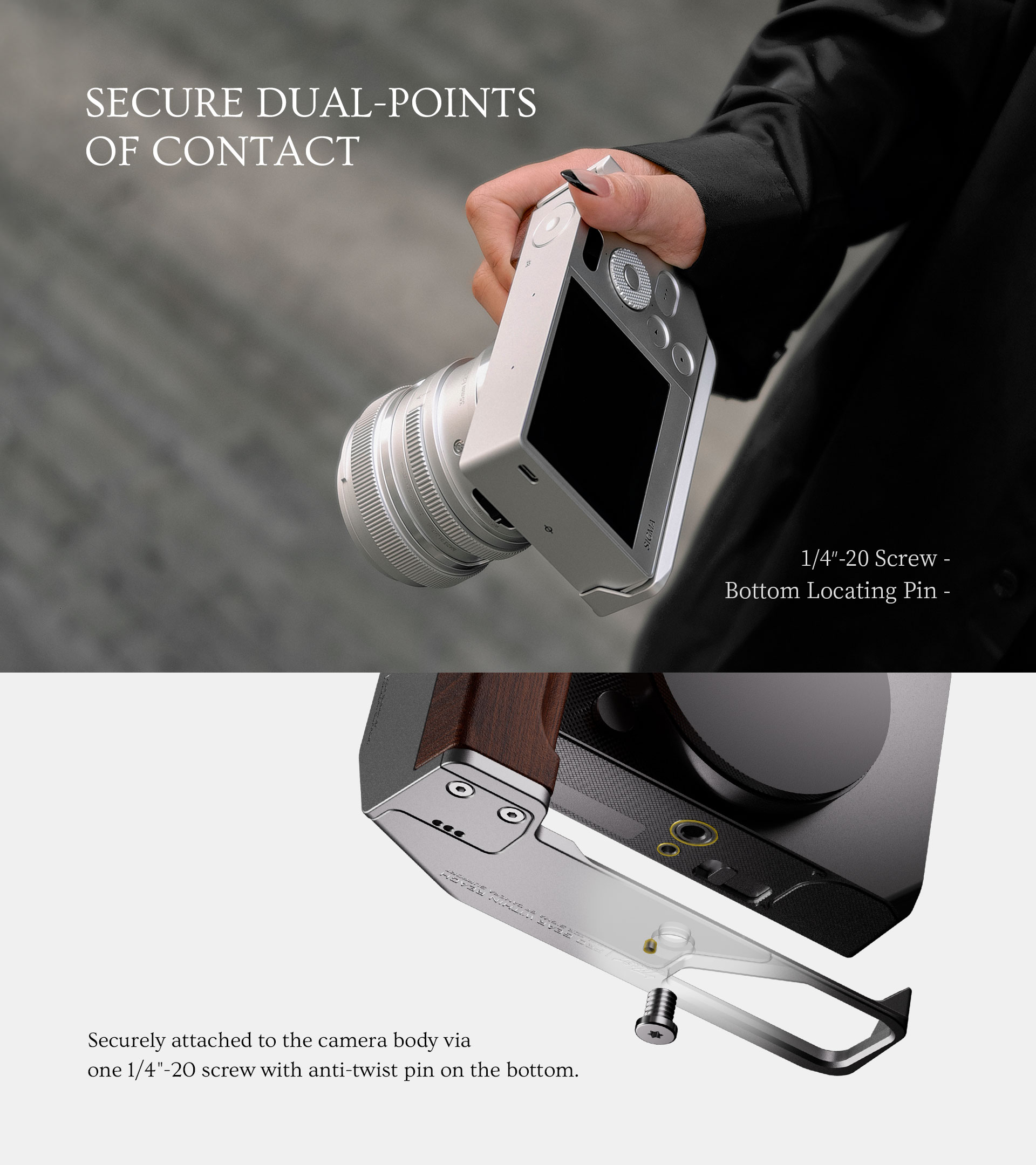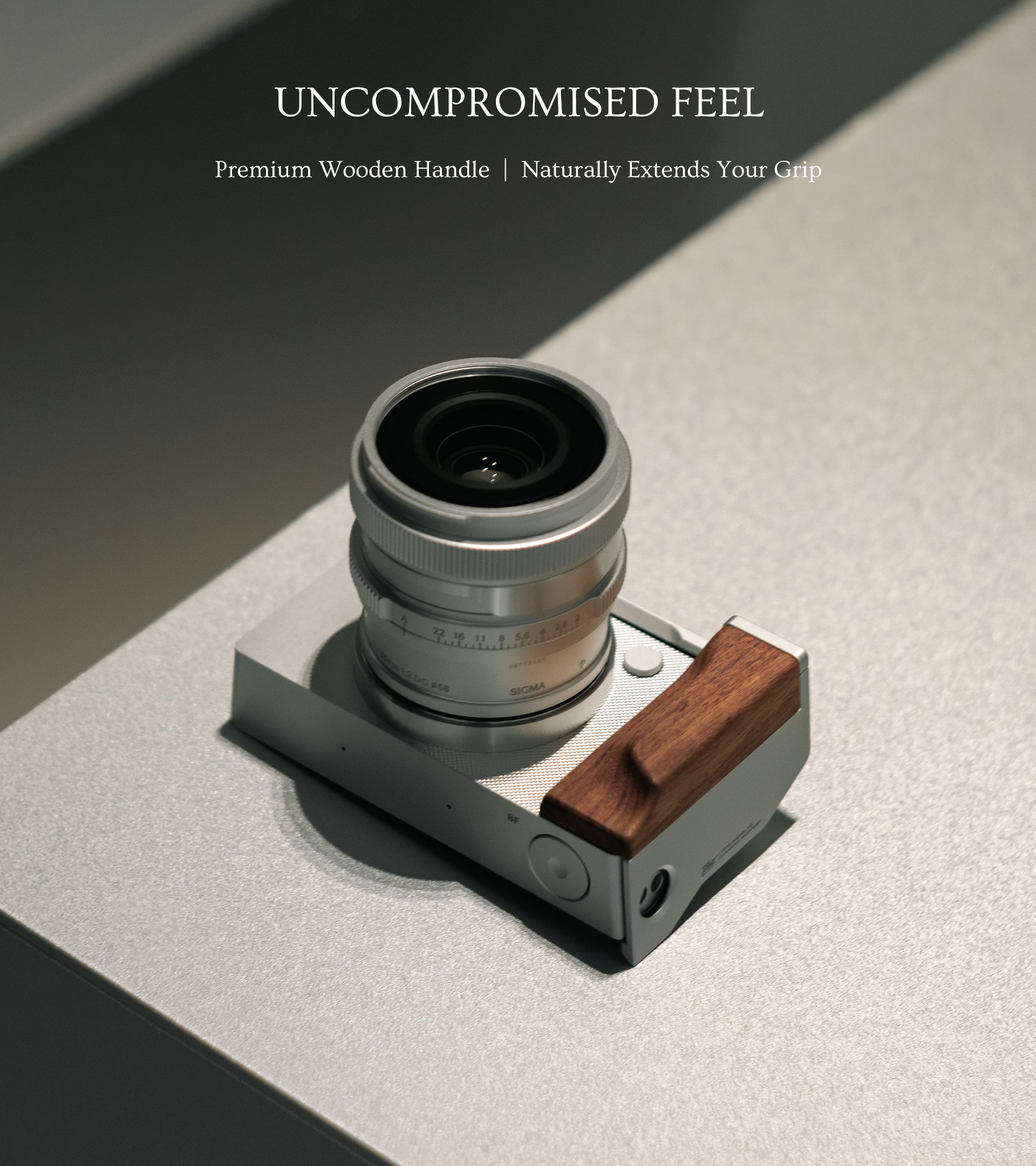 Predstavljamo montažnu ploču s drvenim rukohvatom za Sigma BF. Temelj ovog L-oblika nosača je drveni rukohvat, izrađen od orahovog drva. To omogućuje ugodniji način rada i rukovanja fotoaparatom, a istovremeno ostaje kompaktno i jednostavno za putovanja.
