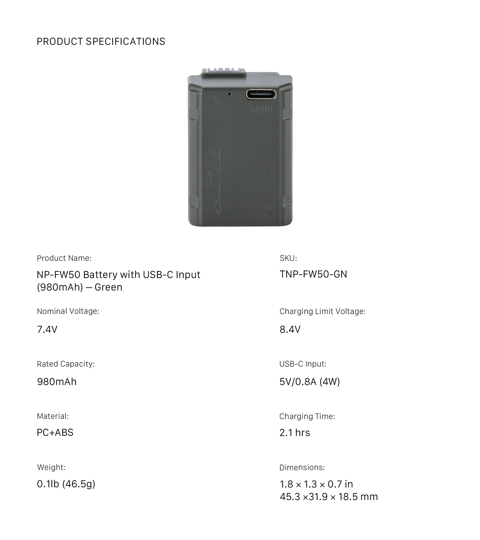 Bez obzira jeste li profesionalac ili entuzijast, NP-FW50 je pametno, učinkovito i sigurno rješenje za napajanje za sve vaše potrebe fotografiranja i snimanja videa.