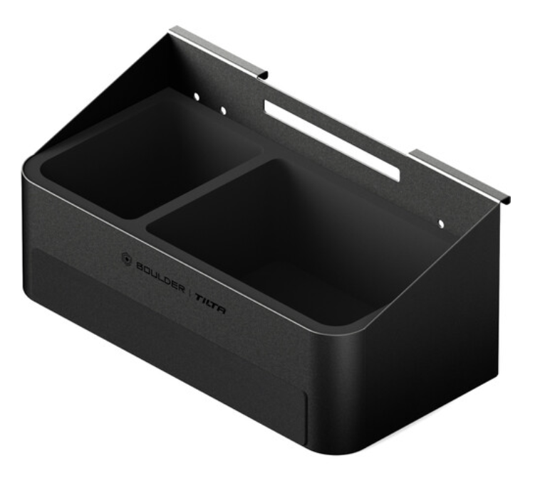 Tilta TC-OB-B organizator za kutiju (crna) je robusni, potpuno metalni dodatak za pohranu s dva odjeljka koji se izravno postavlja na stranu bilo kojeg Tilta Boulder kolica za kameru, pružajući dva prostrana odjeljka za alate, baterije, kabele i pribor, a istovremeno sve ostaje odmah dostupno odmah ispod glavne ladice.