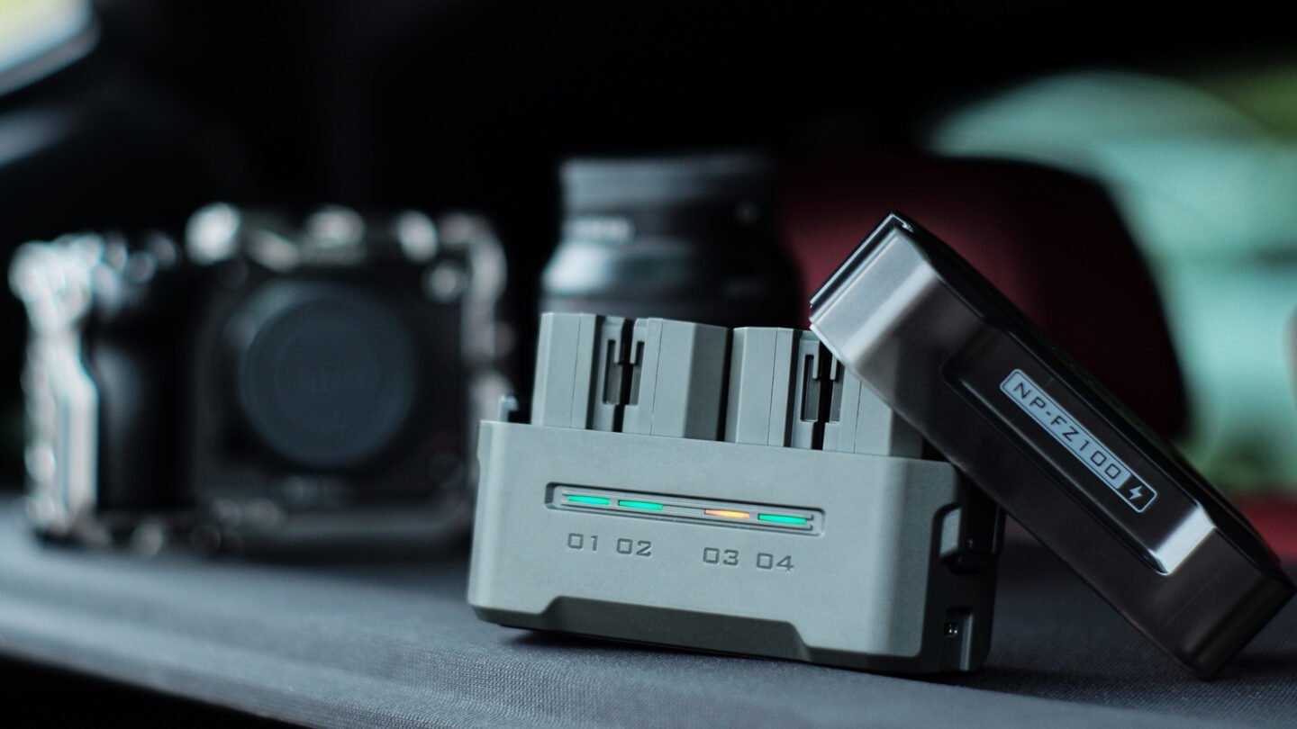 Ova kompaktna stanica za punjenje dizajnirana je za baterije NP-FZ100 tvrtke Sony i drugih proizvođača. Stanica za punjenje nudi četiri utora za jednostavno punjenje i dovoljno je kompaktna za nošenje .