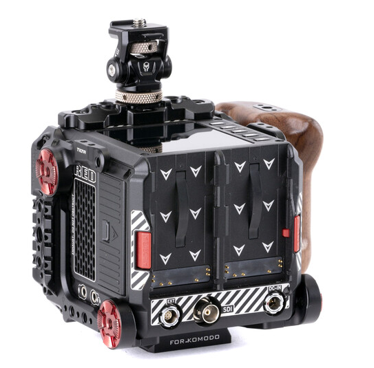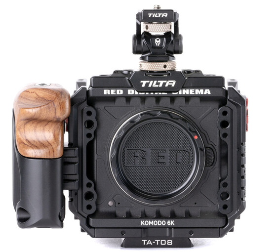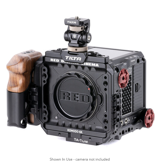 Tilta TA-T08-AB RED KOMODO Kit A (crni) je osnovni početni komplet za RED KOMODO 6K, koji kombinira lagani aluminijski kavez s četiri ARRI rozete i opsežnim navojima za montažu, NATO-montažnu drvenu ručku s desne strane za udobno ručno rukovanje, nosač za monitor s podesivim nagibom i brzootpuštajuće donje ploče Arca-Swiss i Manfrotto - pružajući zaštitu, ergonomiju i brze prijelaze sa stativa/gimbala u jednom pristupačnom paketu.